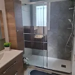 La villa incluye un cuarto de baño con una ducha y una lavadora.